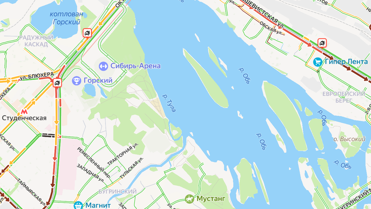 Наиболее плотное движение на момент публикации наблюдается на улицах Большевистской, Ватутина, Троллейной, Немировича-Данченко, Мочищенском шоссе, Богдана Хмельницкого. Движение по Бердскому шоссе, по данным 2ГИС, парализовали ремонтные работы и ДТП. «Спасибо, давайте в +29 будем все дружно в пробке стоять, нам же заняться нечем больше в выходные». «Хочу домой, а не вот это вот всё…», – возмущаются горожане в сервисе. Также довольно плотное движение на Димитровском мосту, в сторону левого берега. Там пробки составляют 7 баллов. Центральные улицы, согласно данным Яндекс.Пробки, свободны. В частности, можно легко проехать по Ипподромской, Фабричной, проспекту Димитрова и прочим улицам.