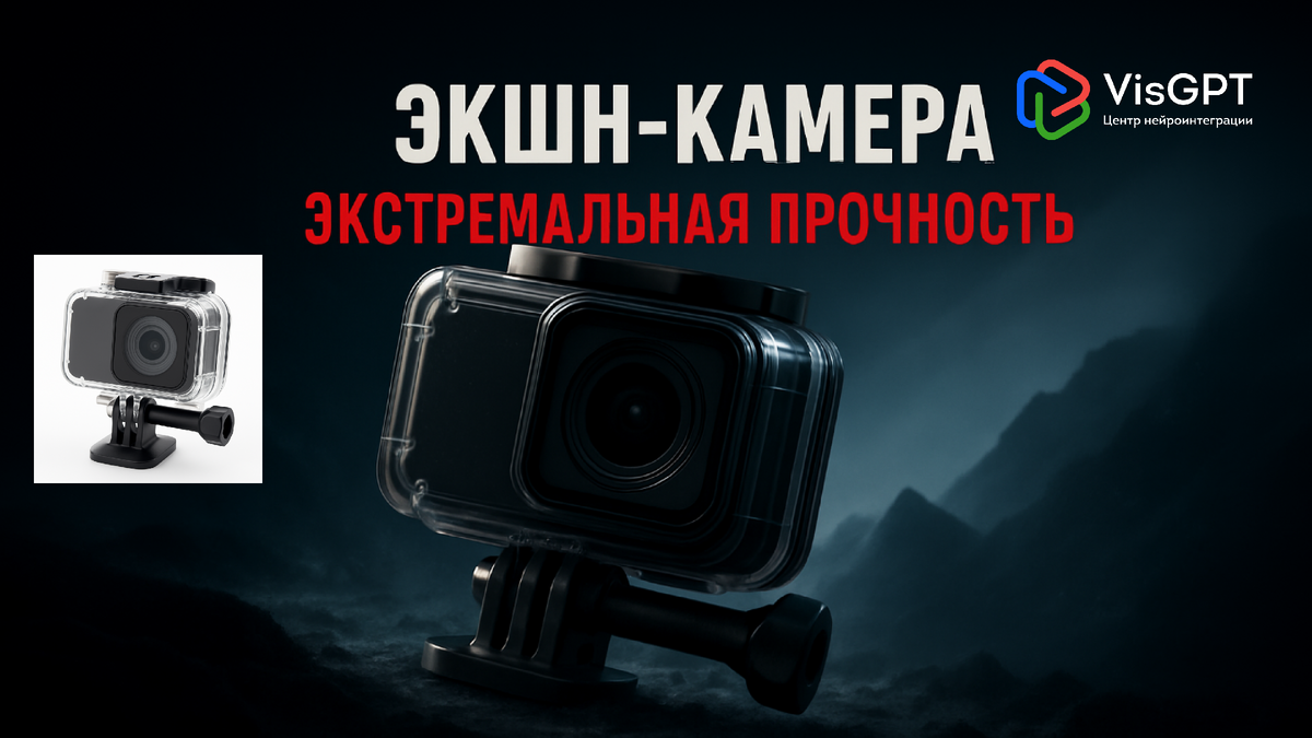 Для экстремалов нейросеть создала драматичную карточку с черным фоном и красными акцентами, подчеркивающую прочность устройства. Для семейной аудитории — теплое изображение с акцентом на безопасности детей. Для блогеров — техностиль с демонстрацией стабилизации 4K.