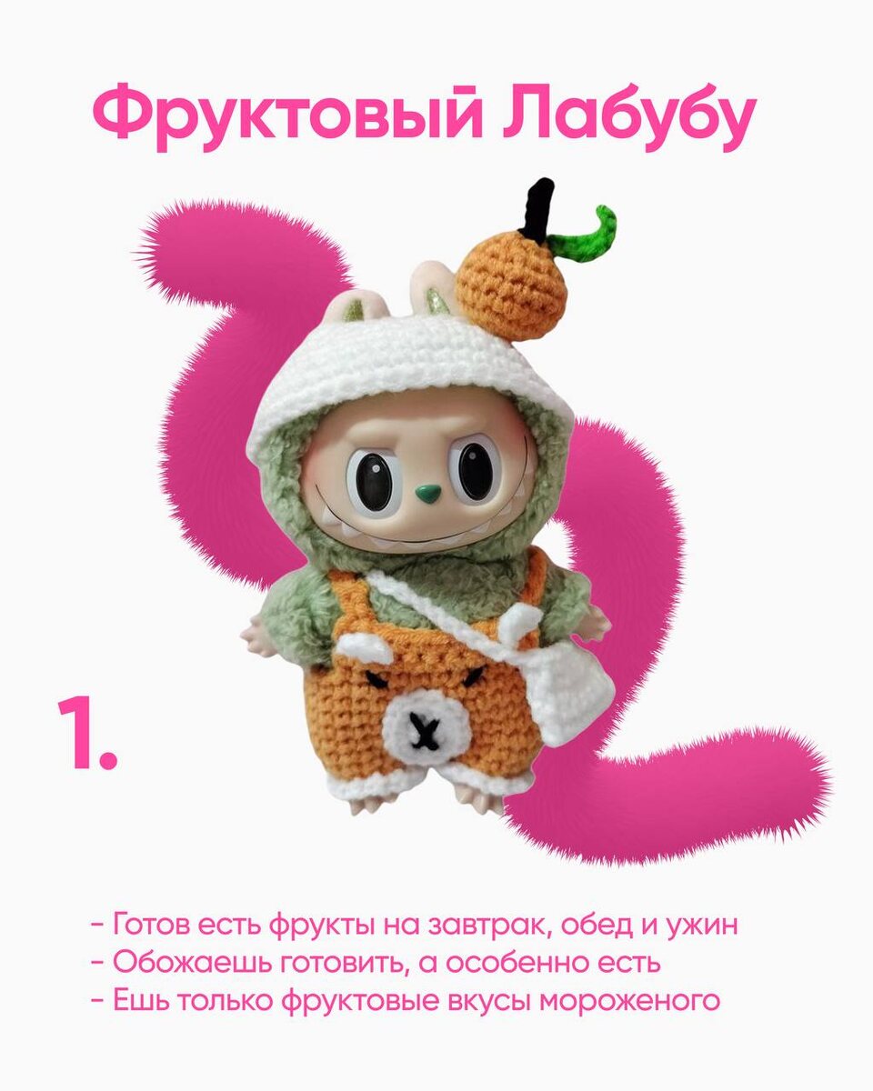 Проходи опрос, смотри, какой номер ответа у тебя встречается чаще всего и ищи своего Лабубу.