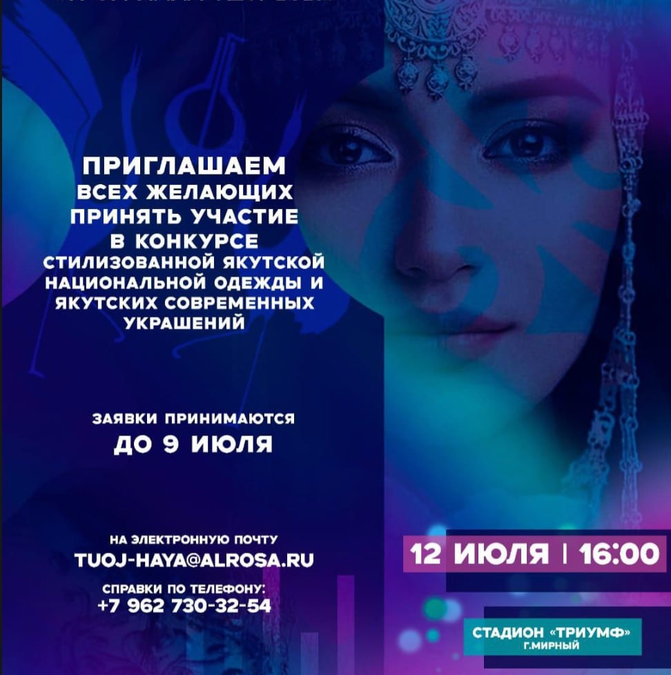 Конкурс стилизованной якутской одежды и украшений пройдёт 12 июля на стадионе «Триумф», начало — в 16:00. Заявки на участие принимают до 9 июля по номеру +7 962 730-32-54. Приходите показать свои наряды!