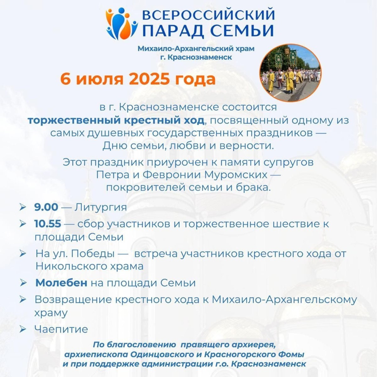 ⛪️ Приглашаем вас 6 июля принять участие в торжественном крестном ходе, посвящённому Дню семьи, любви и верности.