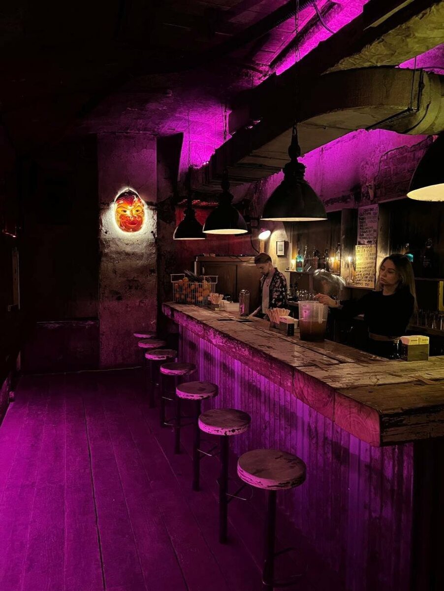 Секретный бар в соляных катакомбах Солянки🍸✨ Если хочется новых ощущений — нашли для вас камерный бразильский спикизи-бар «Ботафого». Попасть сюда можно через подвал Black Swan или через кухню Bambule. Громкое техно, свечи, горящие в полутьме, светящаяся карнавальная маска на стене, неон и растения. В меню: коктейли на роме и кашасе (дистиллят из сахарного тростника), бразильский стритфуд и сэндвичи. Чтобы ощутить бразильский вайб, советуют брать кайпиринью с цитрусами 🍊 📍ул. Солянка, 1/2с1