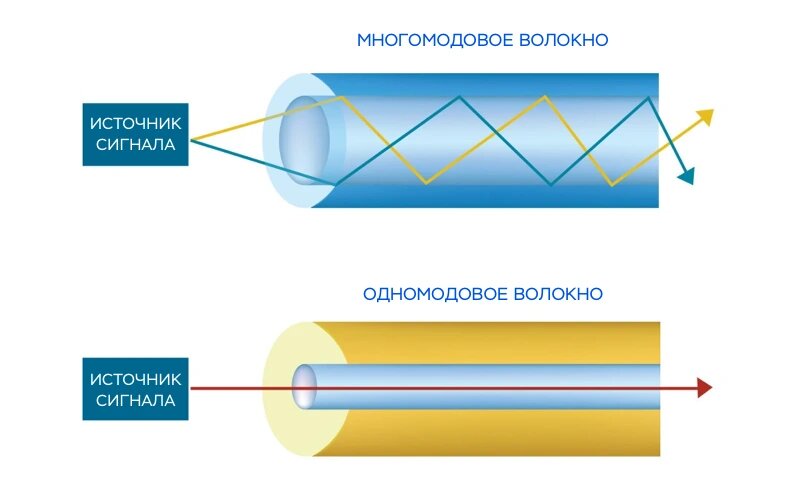 Смотреть на Rutube Подробнее рассмотрим строение одномодовых и многомодовых оптических волокон. Те и другие состоят из сердцевины и оболочки, но при этом отличаются пропускной способностью и расстоянием, на которое могут быть переданы данные. Мода — это элементарная единица цифрового сигнала, представляющая собой один отдельный луч света, проходящий по волокну. Таким образом, одномодовое волокно имеет один путь распространения сигнала, а многомодовое — несколько. Диаметр сердцевины — одно из основных отличий между одномодовыми и многомодовым волокнами. Одномодовые волокна имеют меньший диаметр сердцевины – 9 микрометров. Такой диаметр позволяет передавать только один световой луч, и он более сфоку