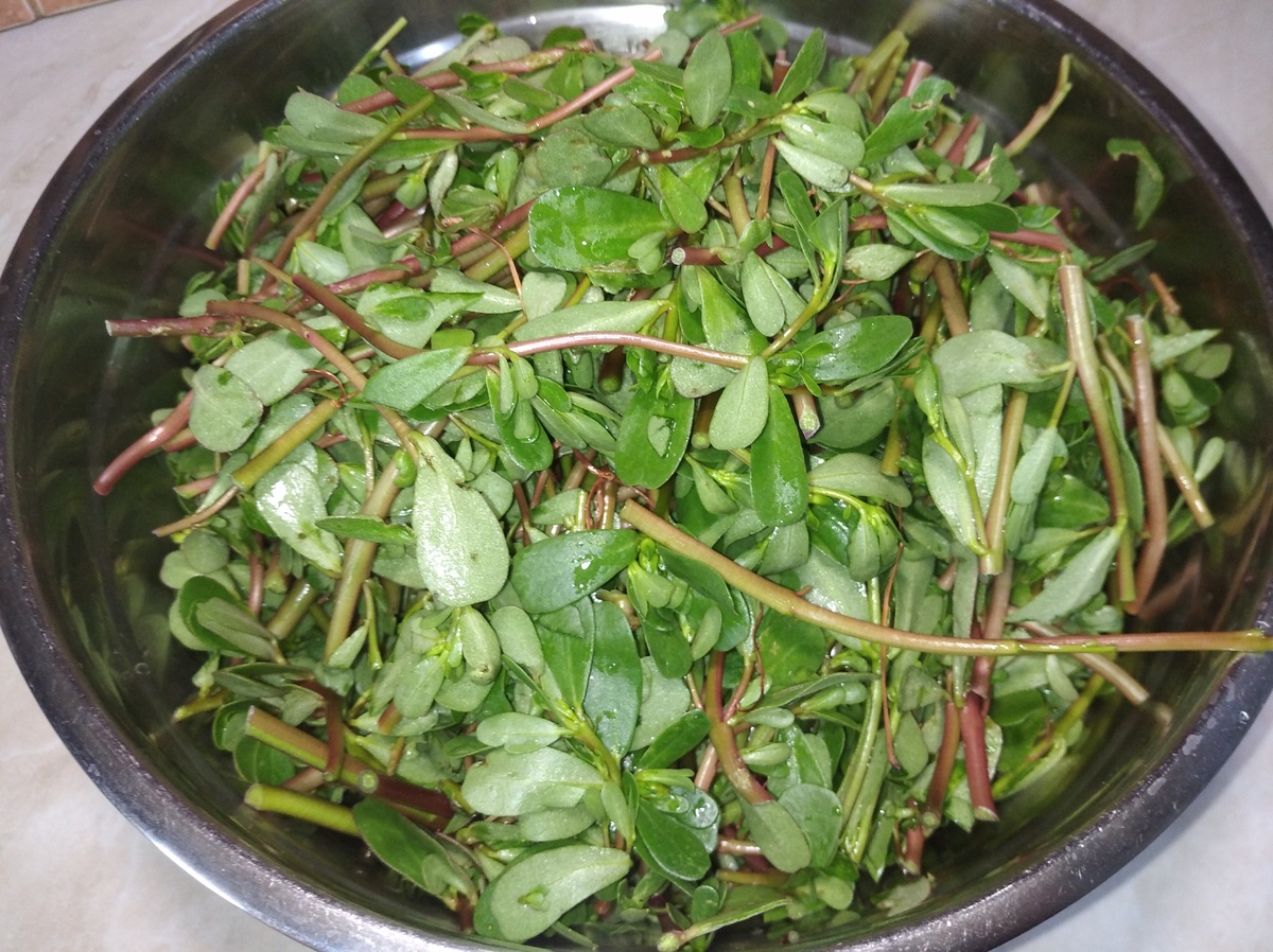 Портулак (дандур) – это уникальная съедобная трава с освежающим кисловатым вкусом и хрустящей текстурой. Наши предки высоко ценили это растение за его полезные свойства и необычный вкус. Маринованный портулак станет изысканной закуской и оригинальным дополнением ко многим блюдам. Когда на моём столе появляется маринованный портулак (дандури), каждый ужин превращается в маленькое путешествие по вкусам Средиземноморья. Это блюдо не только удивляет своей оригинальностью, но и радует свежестью и ярким вкусом. Портулак, известный своей нежной текстурой и лёгкой горчинкой, в маринаде раскрывает все грани своего вкуса. Приготовьте его, и он станет вашим любимым дополнением к любым блюдам! Попробуйте, и портулак покорит вас своей неповторимостью. Ингредиенты На банку 0,5 л Портулак 150-200 г Чеснок 2 зуб. Лавровый лист 1 шт. Зерна кориандра 0,5 ч. л. Перец душистый горошек 3-4 шт. Уксус 9% 1 ст. л. Рассол на 1 л воды: Соль 1 ст. л. Сахар 2 ст. л. 1. Стебли молодого портулака (собирать надо до