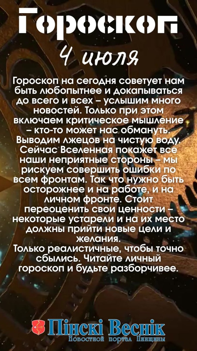 #Гороскоп @Пинский Вестник ЮТУБ | САЙТ| ИНСТ | ВК | ОК | ФЕ | Прислать новость