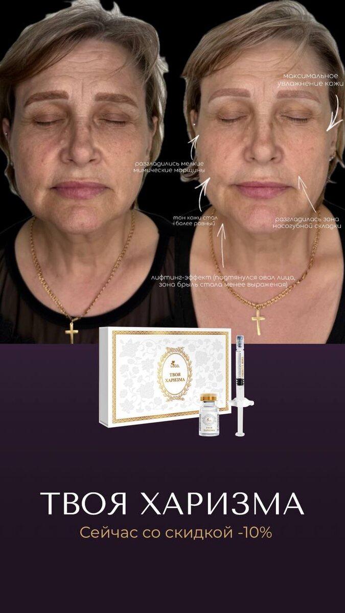 Твоя Харизма стимулирует выработку коллагена, обеспечивая глубокое увлажнение и заметное омоложение.