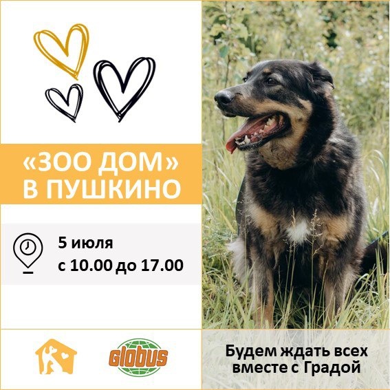 Приглашаем завтра принять участие в нашей благотворительной акции по сбору помощи в Пушкино: 🗓 5 июля ⏰ С 10.00 до 17.00 📍Глобус Пушкино (Московская область, Пушкино, Красноармейское шоссе, вл. 105) Что же будет? ◾️ благотворительная лотерея: вносите посильную сумму в пользу подопечных «ЗОО ДОМа», вращайте барабан и получайте памятные призы о том, что сделали доброе дело🔮 ◾️ знакомство с ласковой Градой🐾 ◾️ пункт сбора товаров для подопечных «ЗОО ДОМа»🎁 Планируем много общаться, смеяться и заряжаться позитивом! До встречи в Пушкино✌🏻