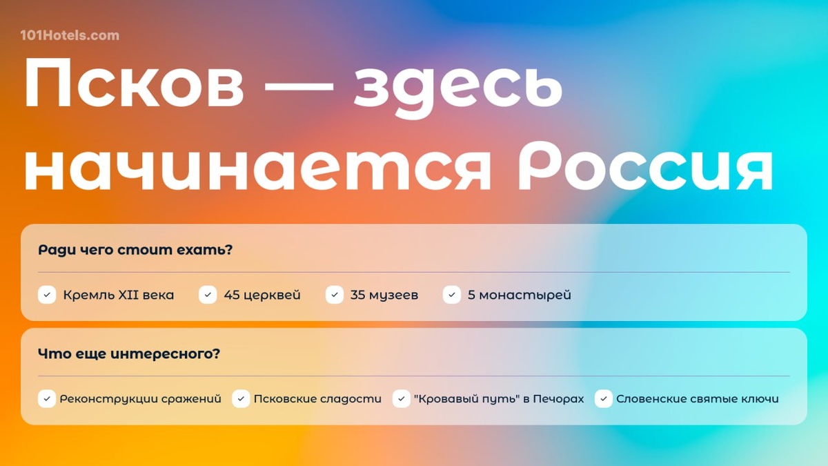 В древние времена город являлся важнейшим оборонительным центром русской земли, а сейчас невероятно привлекателен для туризма — это про Псков! Тихий и атмосферный город отлично подойдет для семейного путешествия или вылазки на выходные:
