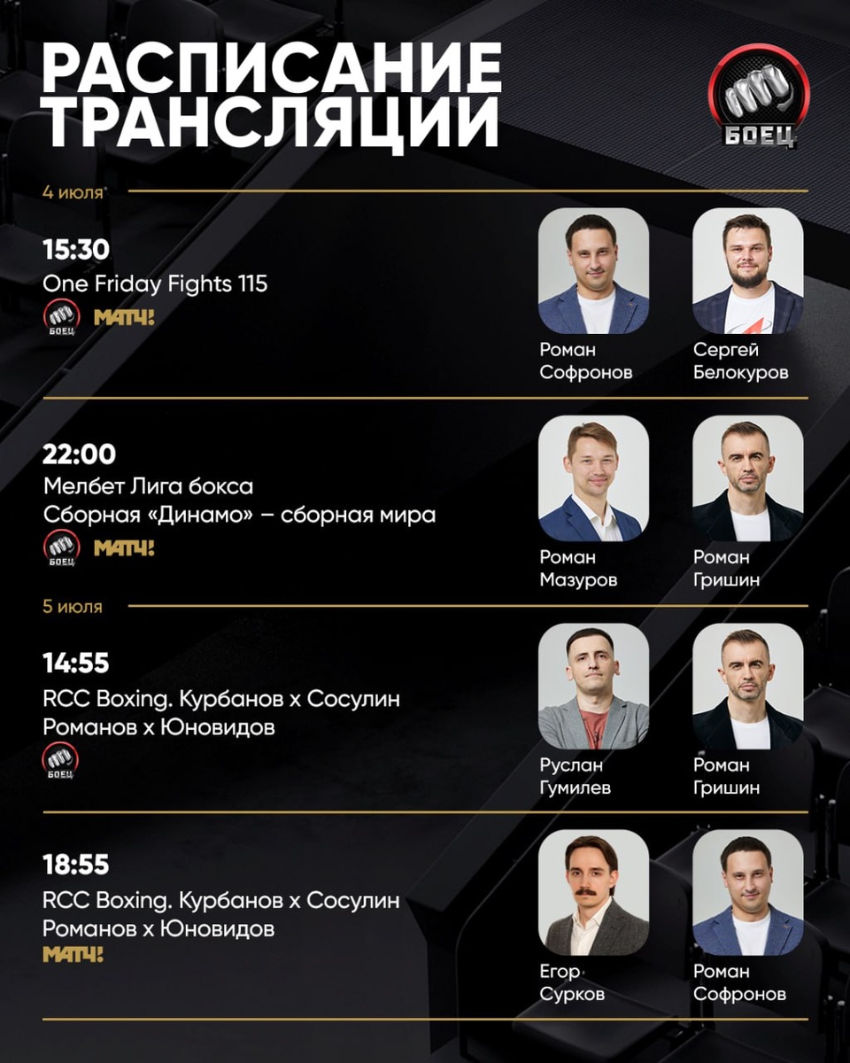 Ну а в субботу перемещаем свое внимание на турнир RCC Boxing. В главном событии встретятся Курбанов и Сосулин ⚔️