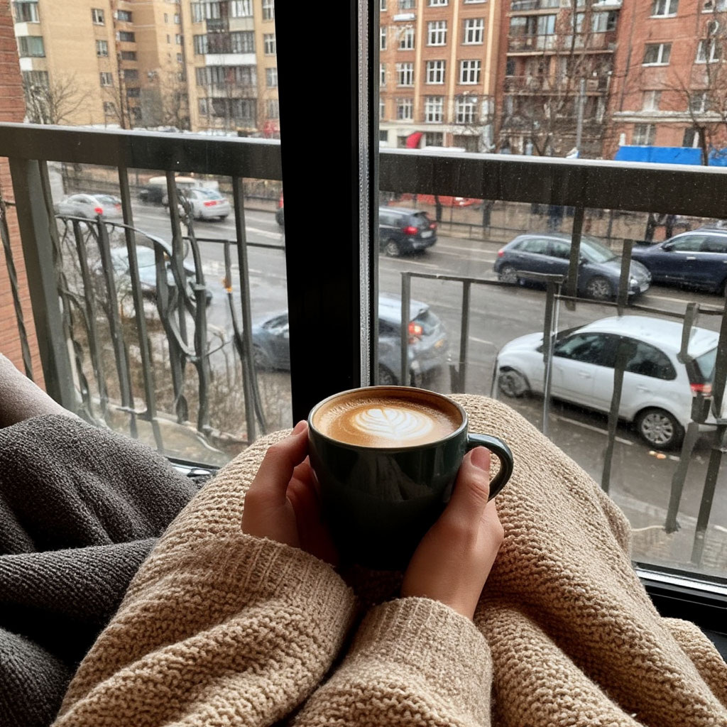 Я вышла на балкон, завернувшись в плед, с чашкой кофе в руках. День только просыпался, но город уже жил — кто-то спешил, кто-то чистил стекло машины, кто-то вёл ребёнка в садик.