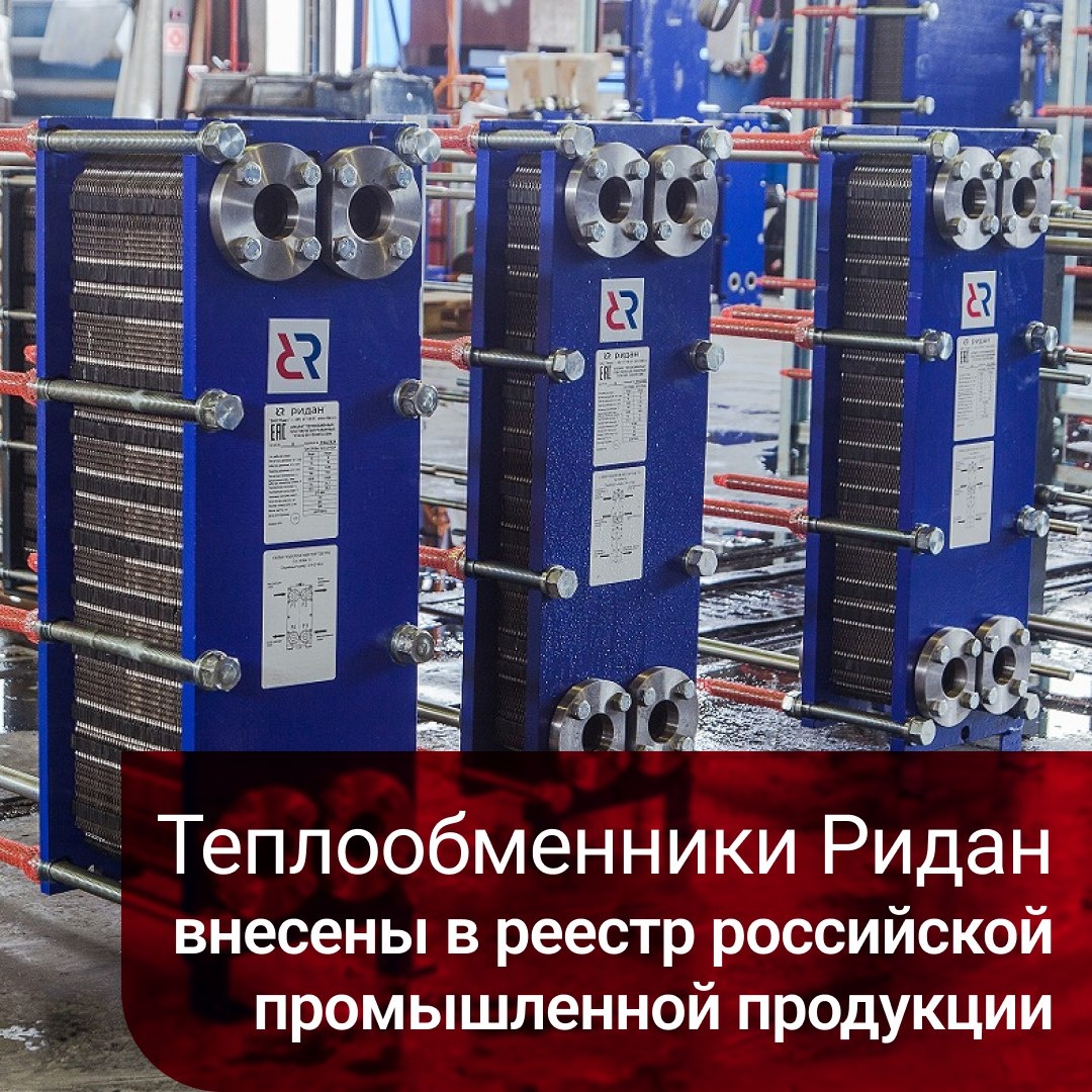 Теплообменники Ридан включены в реестр российской промышленной продукции по постановлению Правительства Российской Федерации от 17 июля 2015 г. № 719 «О подтверждении производства промышленной продукции на территории РФ».