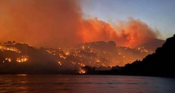 В среду 2-го июля около 16:00 вспыхнул пожар в районе к востоку от города Иерапетра, между прибрежным местечком Агиа Фотия (Αγία Φωτιά) и деревней Скинокапсала (Schinokapsala). Сильнейший ветер, менявший направление, стал союзником огня и, несмотря на усилия пожарных, пламя мгновенно распространилось. В зоне риска оказались несколько деревень, жители которых были срочно эвакуированы. Оповещение об этой чрезвычайной ситуации на Google Картах: https://maps.app.goo.gl/xfqUCqDYcqo73WK88 Ночь пришла страшно-огненной, дым доходил до самого моря у поселка Макригиаллос. Огнеборцы с помощью волонтеров сдерживали огонь как могли, стараясь не допустить его до ближайших отелей. Но туристов все-таки пришлось эвакуировать в Иерапетру, в том числе и по морю, на лодках… На помощь критянам прибыли дополнительные силы из Афин, включая технику. С раннего утра, несмотря на ветер и задымленность, вертолеты тушили пламя с воздуха, набирая воду в море и в водохранилище Брамианы (Bramiana). На огненном фронте