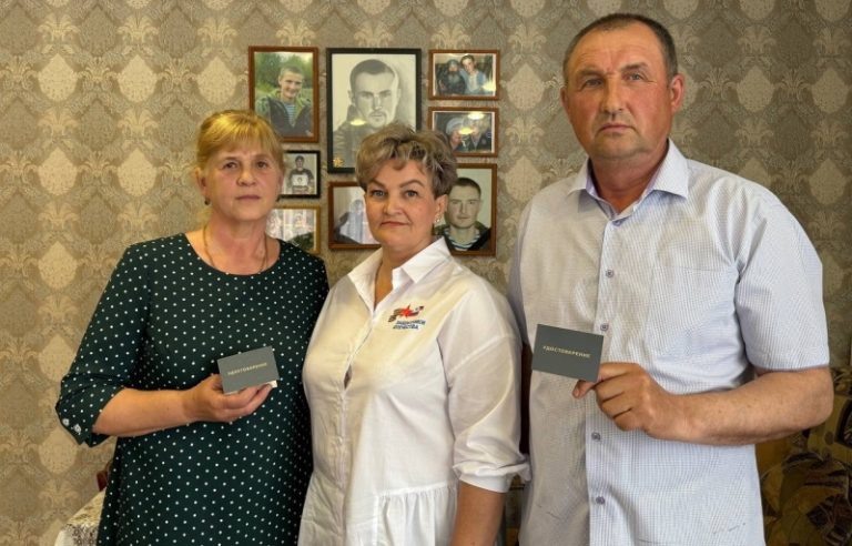 Родители добровольца из Мордовии получили удостоверения членов семьи погибшего