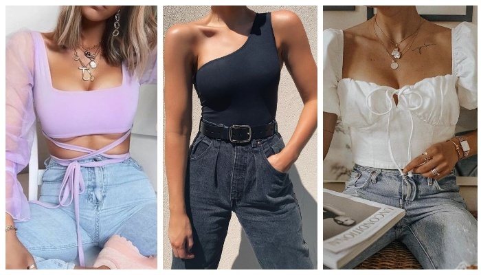 Топы бывают на бретелях, с рукавами — короткими и длинными. Застежка может быть спереди и сзади. Приветствуются также эластичные модели. Чем разнообразить образ, подскажет ваша фантазия. Совместите их с шортами или юбками для прогулки. Добавьте джинсы или брюки для более обыденного образа. Или же сочетайте со стильными юбками или деловыми костюмами для особых случаев и мероприятий.