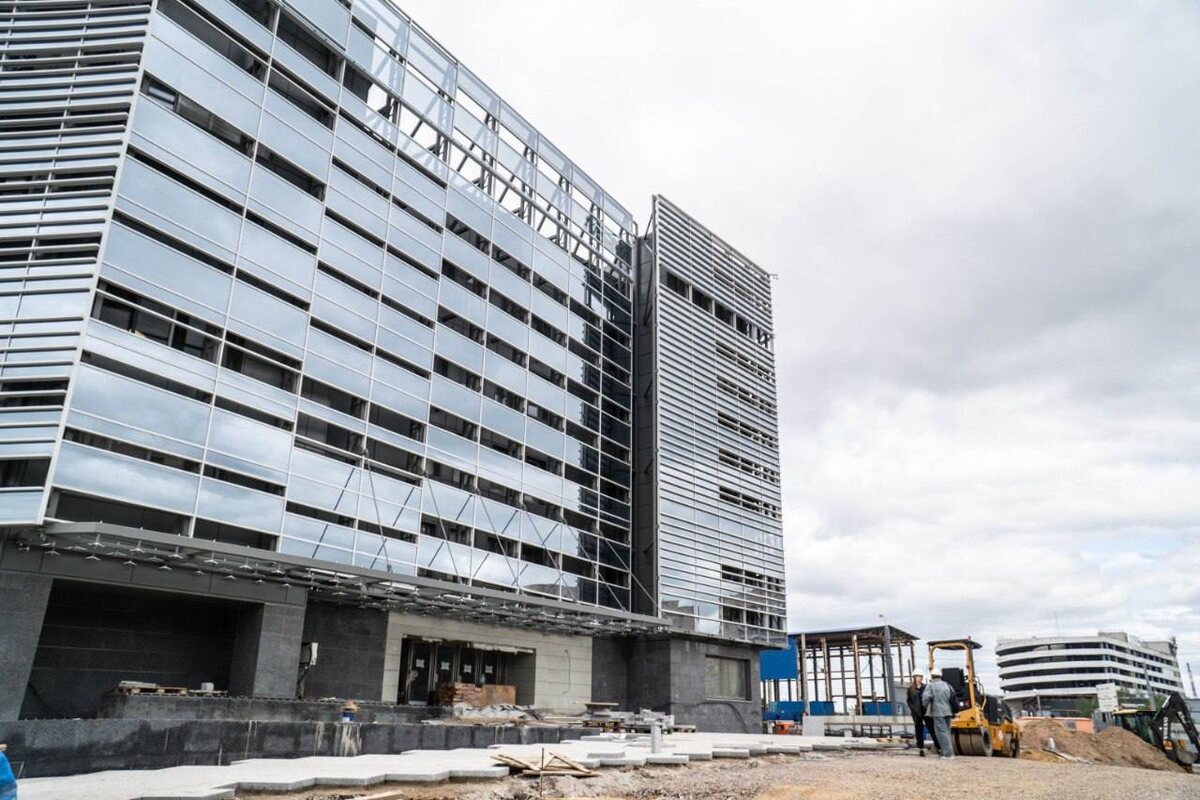 На площадке вестибюля станции «Юго-Западная» продолжается благоустройство. Метростроители укладывают тротуарные плиты из натурального камня вокруг здания – смонтировано около 1400 из более чем 3000 кв.м. Продолжается облицовка гранитом ступеней лестницы, ведущей ко входу и выходу. Специалистам предстоит восстановить более 1500 кв.м. газона. Фото: Telegram-канал Метрострой Северной Столицы Подпишись на Город+