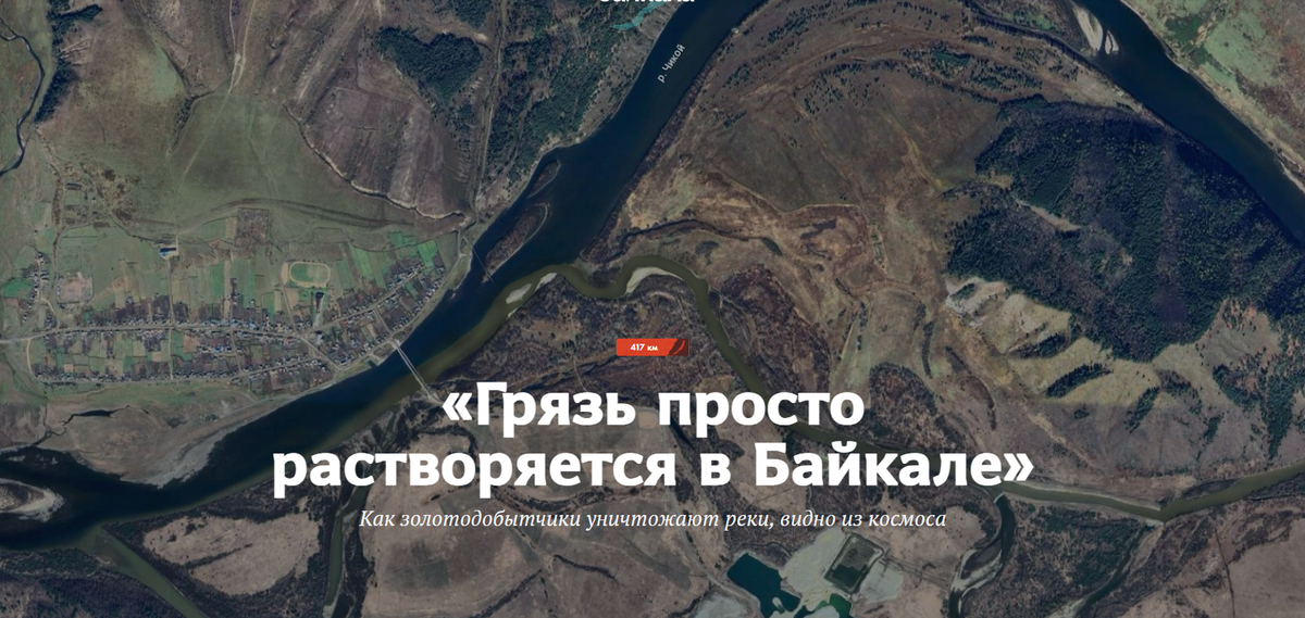 На космоснимках хорошо видно, в какой момент река Катанца в Забайкальском крае становится грязной. Потоки мутной воды и ила в нее приносит река Хилкотой, пропущенная через полигоны золотодобывающих компаний. Сначала Хилкотой проходит через месторождения, которые разрабатывает компания «Тайга», дальше к уже загрязненному потоку примешиваются стоки с полигонов артели «Вертикаль».
