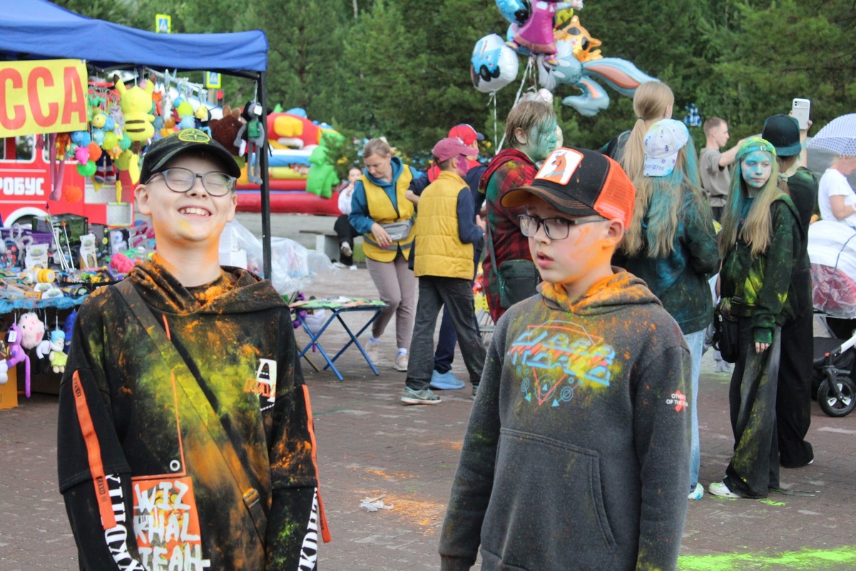 Промокшие, но счастливые! Проливной дождь не помешал красноуральцам ярко и весело отметить День молодежи. В пятницу вечером с неба лило как из ведра. Это не было бы так грустно и обидно, если бы в этот день в Красноуральске не было запланировано празднование Дня молодежи. Все могло сорваться и не состояться по той простой причине, что в проливной дождь люди не рискнут выйти из дома. Однако задолго до назначенного времени на площадь у ДК «Металлург» стали активно прибывать представители молодого поколения города и те, кто молоды душой, несмотря на возраст в их паспортах. Красноуральцы, надев дождевики и куртки с капюшонами, вооружившись разноцветными зонтиками, были готовы зажигать. И такую возможность им организаторы мероприятия – специалисты Управления культуры и молодежной политики МО Красноуральск – предоставили. Интеракивные площадки с разными играми, праздник красок Холи, творческие выступления артистов ДК «Металлург» и гостей из Верхней Туры, игровая программа от Показать полн