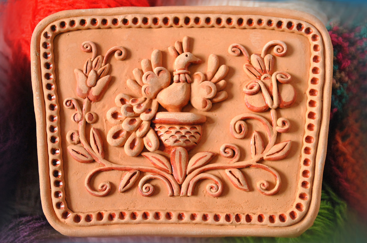 Это декоративное ПАННО, слепленное на ОСНОВАНИИ, просущенное и обоженное в печке. Подкрашенное.
