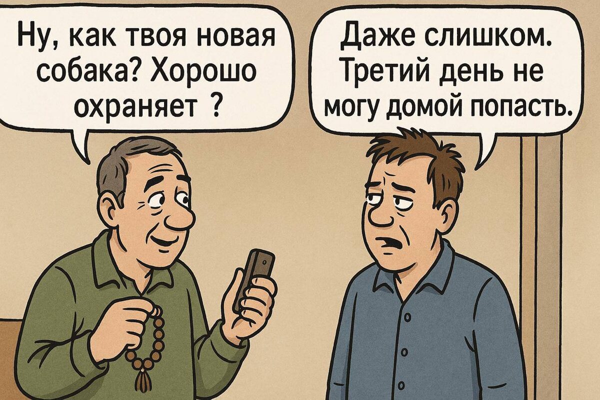 *** В кафе заходит мужчина с собакой. Таинственный незнакомец заключает с посетителями пари, что прямо сейчас при них его пёс заговорит. Проходит время. Пёс молчит. Разочарованный хозяин отдаёт деньги и уходит. На улице мужчина говорит псу: – Из-за тебя я проиграл кучу денег! – Зато представь, сколько мы завтра соберём! *** На соревнованиях между собаками проводили испытание: перед ними клали сосиску и заставляли ждать команды. Победил лабрадор, который обошёл всех, съел чужие сосиски и спокойно ждал команды. *** – Почему ты развелась с мужем? – Так он относился ко мне как к собаке! – В каком смысле? – Требовал от меня верности. *** – Наша собака ничего не охраняет, всем рада, обожает общаться. – Зато она сможет отпугнуть грабителя-социофоба. *** На приёме у психолога: – Собака – мощный антидепрессант. – А две собаки? – А это уже наркотик. *** Встретились две собаки на прогулке: – Почему всю жизнь собаки в намордниках ходили, а люди только сейчас начали их носить? – Так наши тоже с