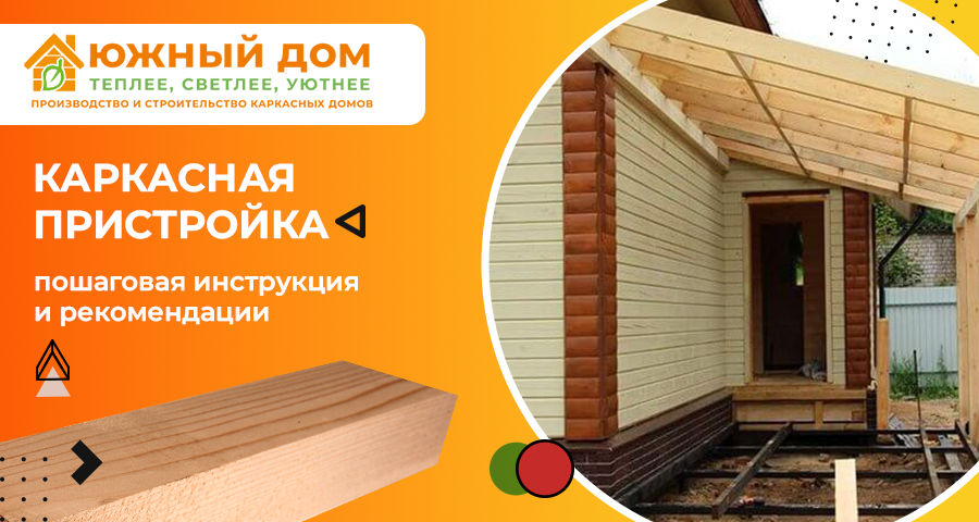 Важным фактором, обуславливающим успех каркасного строительства, является обязательная просушка всех пиломатериалов, а также из обработка огне- и биозащитой. Помимо этого, необходимо заранее провести расчеты всех размеров (оконных проемов, дверных групп и т.д.) и в процессе монтажа постоянно сверяться с показателями строительного уровня. Соблюдение этих требований позволит не только значительно облегчить работу над пристройкой, но и обеспечит уверенность в ее надежности.