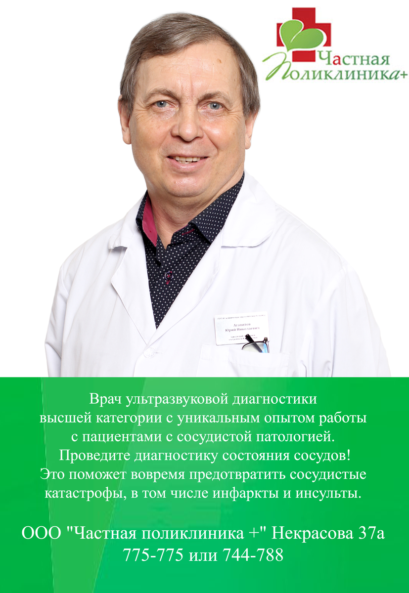 Агапитов Юрий Николаевич - к.м.н, врач ультразвуковой диагностики высшей категории с уникальным опытом работы с пациентами с сосудистой патологией (артерии и вены всего организма), а также ультразвуковой диагностики органов и систем (брюшная полость, почки, щитовидная железа, мочевой пузырь, предстательная железа, молочная железа, малый таз, придаточные пазухи носа, мягкие ткани, лимфатические узлы и др.). Специалист экспертного уровня в разных сферах ультразвуковой диагностики. Важным направлением его работы является раннее выявление онкологических патологий и наблюдение ультразвуковой динамики оценки лечения онкологических заболеваний. Так же к нему обращаются пациенты для диагностики состояния сосудов, особенно после 45 лет, когда важно вовремя диагностировать сужение сосудов, атеросклеротические бляшки, возможное тромбообразование. это во многом поможет вовремя предотвратить сосудистые катастрофы, в том числе инфаркты и инсульты. Записаться на прием: ООО "Частная поликлиника +" Нек