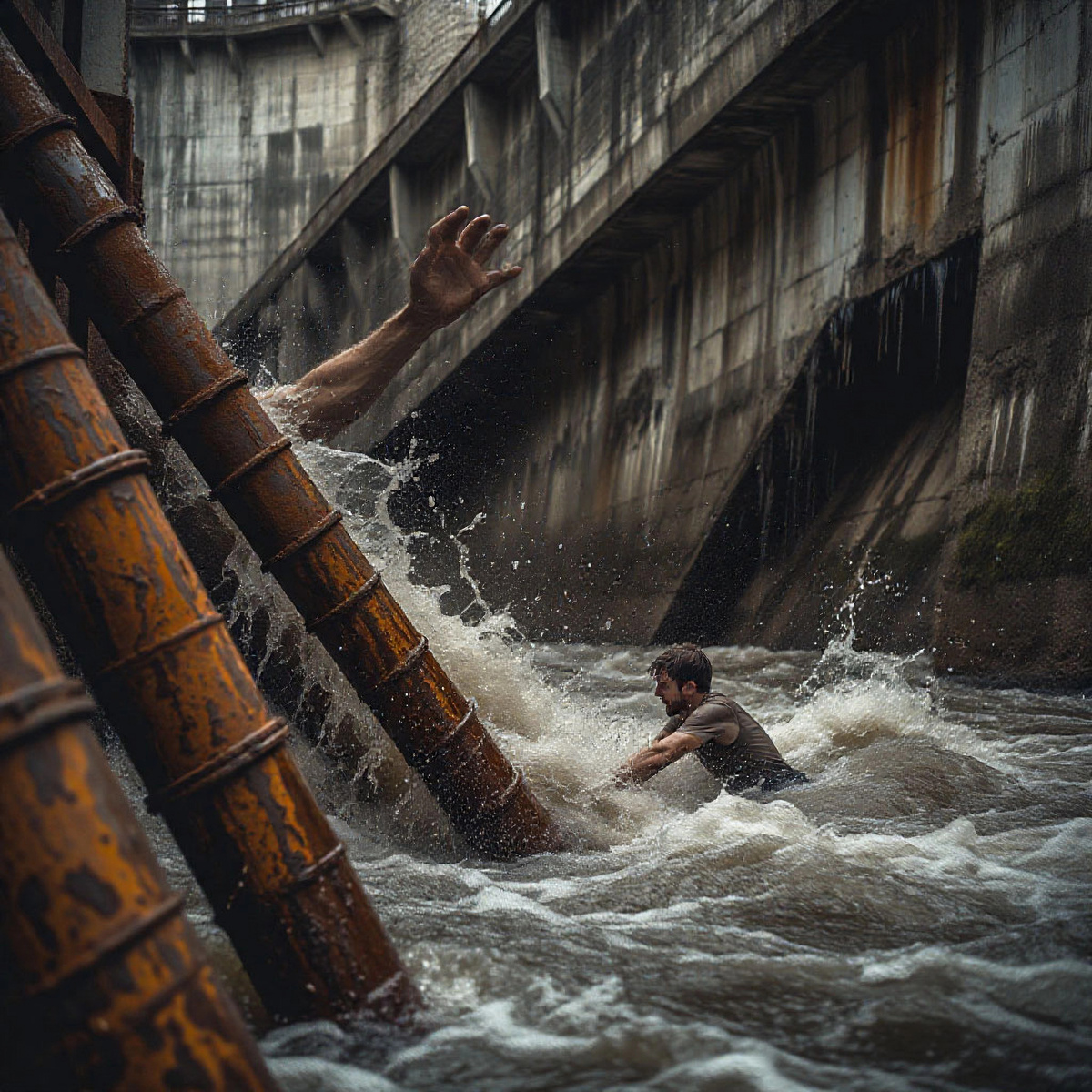 Я пополз прочь, но путь назад был отрезан — обвалилась проржавевшая лестница. Впереди, в нескольких метрах, зиял проём водостока, куда с грохотом устремлялась вода. Ещё минута — и меня унесёт туда. И в этот момент, на грани животного ужаса, мой мозг инженера сделал то, что умел лучше всего — проанализировал ситуацию.