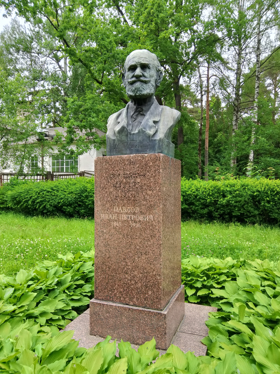 Далее к антропоиднику и зданию старой лаборатории ведет целая аллея бюстов. Сам Павлов, конечно. Плюс Декарт, Мендель и Сеченов. Декарт удивил. У меня он всегда ассоциировался с математикой: система координат, все такое. Пришлось немного самообразоваться с помощью «тети Вики». Оказалось, что бюст был поставлен по настоянию самого Павлова; тот считал Декарта с его рационализмом и картезианством предтечей своих исследований. А главное, Декарт, будучи еще и естествоиспытателем, ввел понятие рефлекса и описал как внешние стимулы вызывают автоматические реакции. По Менделю и Сеченову вопросов нет. Вкратце: Грегор Иоганн Мендель – католический монах, отец генетики, Иван Михайлович Сеченов – великий русский медик и физиолог.