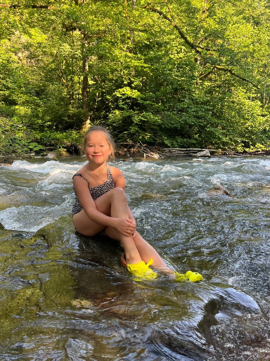 «Союз моря и гор — вот что делает Сочи особенным местом! А горная река — это настоящее спасение в жару. Такой свежести и красоты больше нигде не найти! С детства я с папой окунаюсь в эти кристальные воды, и это дарит заряд энергии на все каникулы!» — делится Варя.