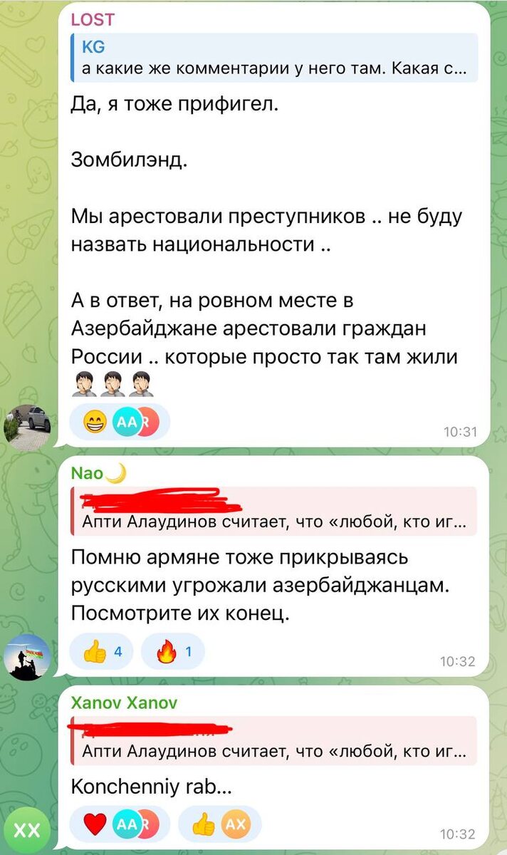 ⏺Командир спецподразделения «Ахмат» Апти Алаутдинов высказался по поводу недавних задержаний азepбайджанской ОПГ в Екатеринбурге