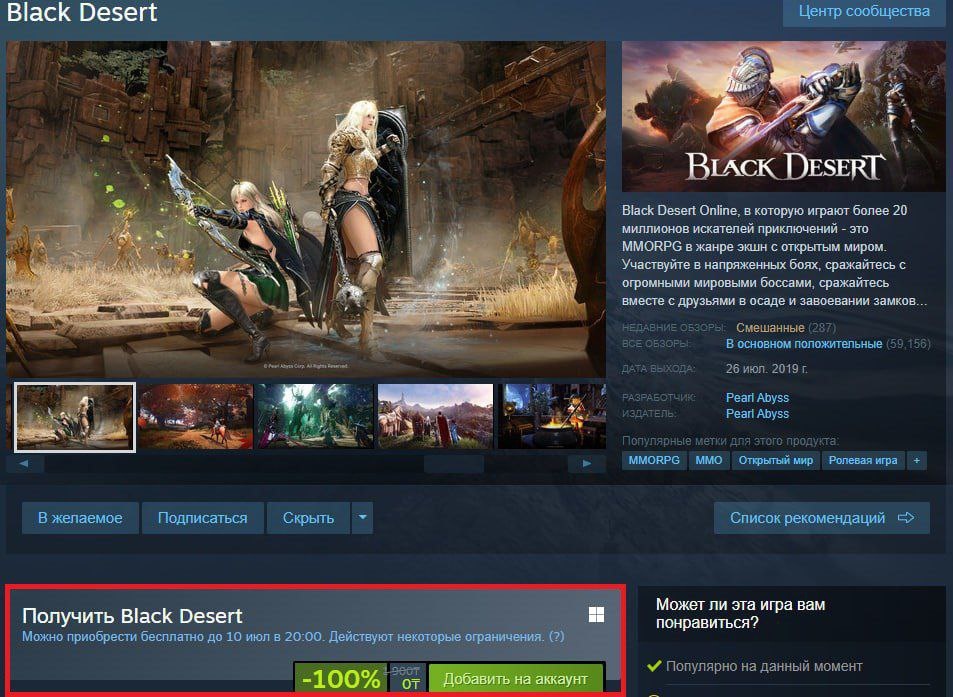 🧟Black Desert раздают в Steam — без акции игра стоит 350 рублей