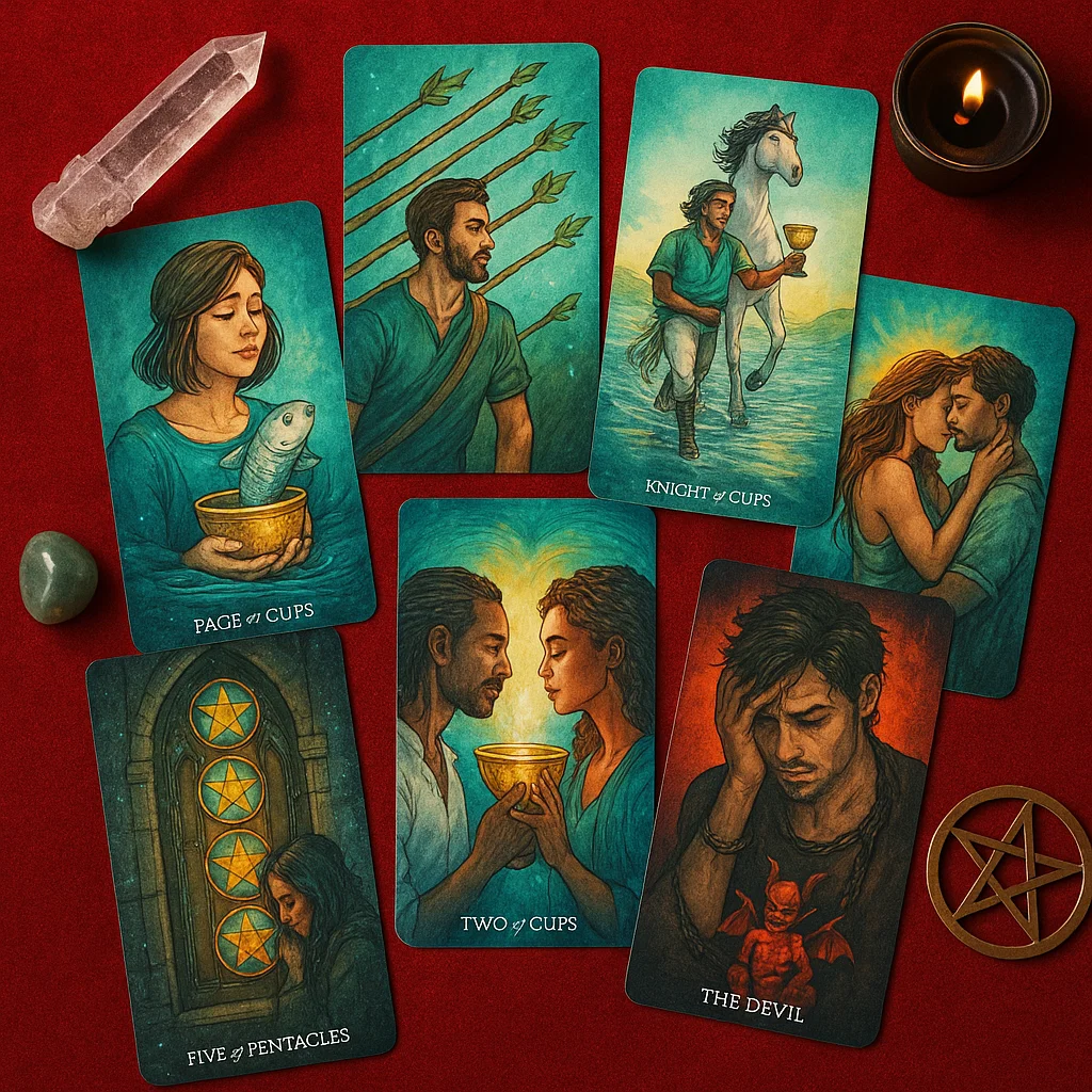 А между вами — связь, которая не отпускает. Влечение, энергетическая тяга, тайны, сны, страхи. Вы чувствуете, что это не просто мимолётная история. Между вами — неразрешённость, напряжение, магическое воздействие, может быть даже кармическая привязка. Это сложно. Это больно. Но это глубоко. Тот, кто хоть раз испытал такую связь, знает: её невозможно забыть.
