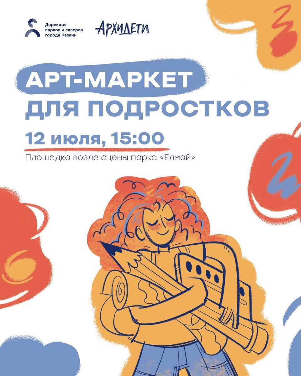 Арт-маркет для подростков в парке «Елмай»: открываем путь в мир искусства 🗓️12 июля в 15:00 Начинающие авторы до 18 лет смогут представить и продать свои работы, получить обратную связь от профессионалов и вдохновение для дальнейшего развития в мире искусства. Также в рамках события пройдет арт-диалог на тему «Как стартовать в творческой профессии» с представителями креативных индустрий. @kazandetki Больше информации в нашей группе, переходите