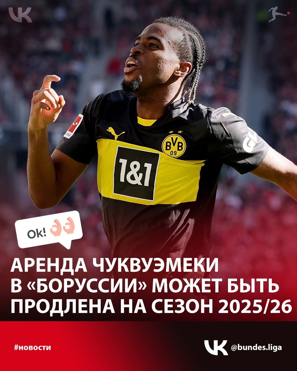 💬☺ Появились слухи о том, что аренда Карни Чуквуэмеки в дортмундской «Боруссии» может быть продлена на сезон 2025/26.