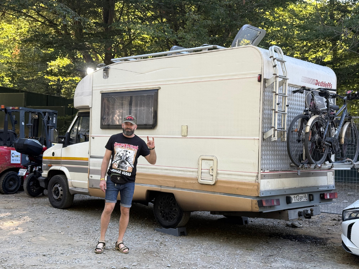 Дорога заняла неделю и вот мы на месте! 1й день Мы добрались до Стамбула и заехали в кемпинг фестиваля. Никаких удобств здесь нет, просто стоянка. Даже нет воды. Поэтому мы заправились заранее, туалет слить где-нибудь найдём. В чате фестиваля кто-то говорил, что ночевать на парковке нельзя. Интересно, нас придут выкуривать вечером из нашего автодома или нет? Надеюсь тут люди адекватные и поймут, что нам больше негде жить. На въезде за стоянку попросили 1300 лир, и недвусмысленно намекнули на чаевые. Мельче 200 лир у меня не оказалось, поэтому парковка встала у нас в 1500 Лир за три дня. На данный момент послушали и посмотрели две местные группы и встретили довольно много россиян. Моя майка «Коррозия металла. Russian Vodka” помогает найти своих. Сегодня вечером хедлайнер группа Manowar! Сторожилы знают о каком речь. Никогда особо не слушал их, но группа крутая. Это наши знакомые, мы виделись недавно в Архангельске. Конечно с автодомом путешествовать всегда в удовольствие, несмотря на р