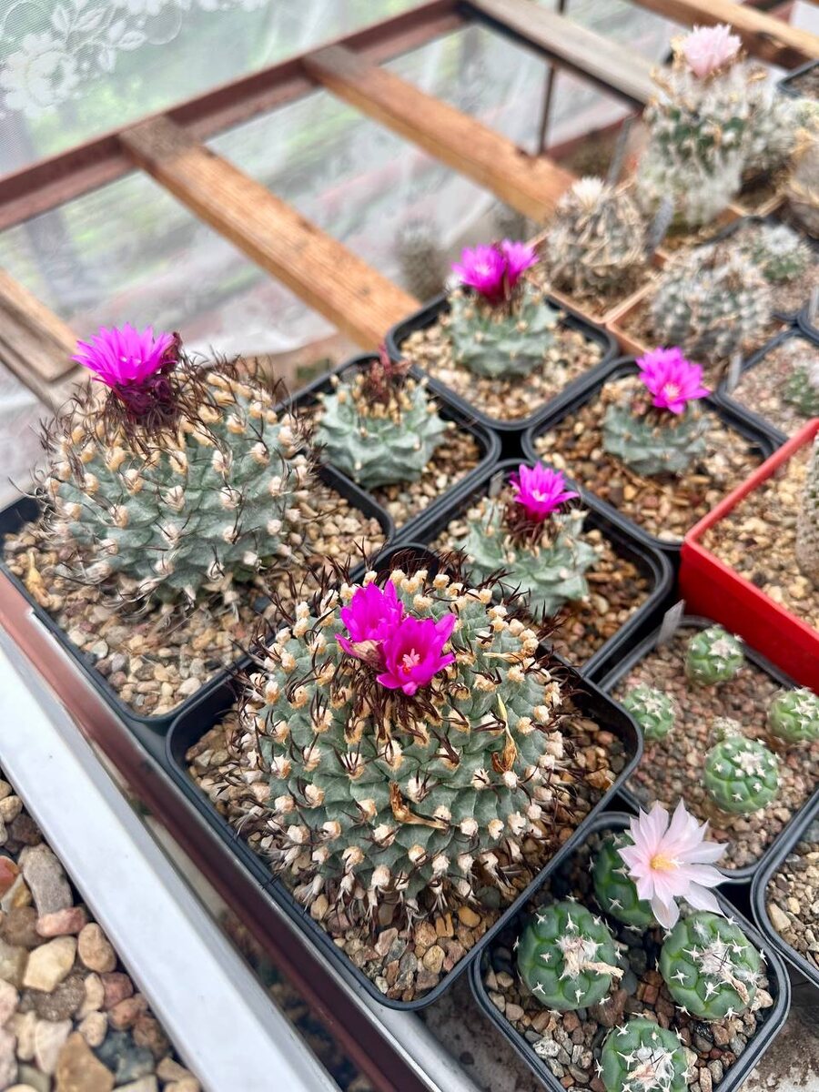 Погода остается пасмурной, отопление подключено, цветение кактусят идет по их графику. Из плюсов - цветы дольше простоят без жары! Растения на фото представлены в моем каталоге, кроме Алонсои… но это скоро будет исправлено 💪
