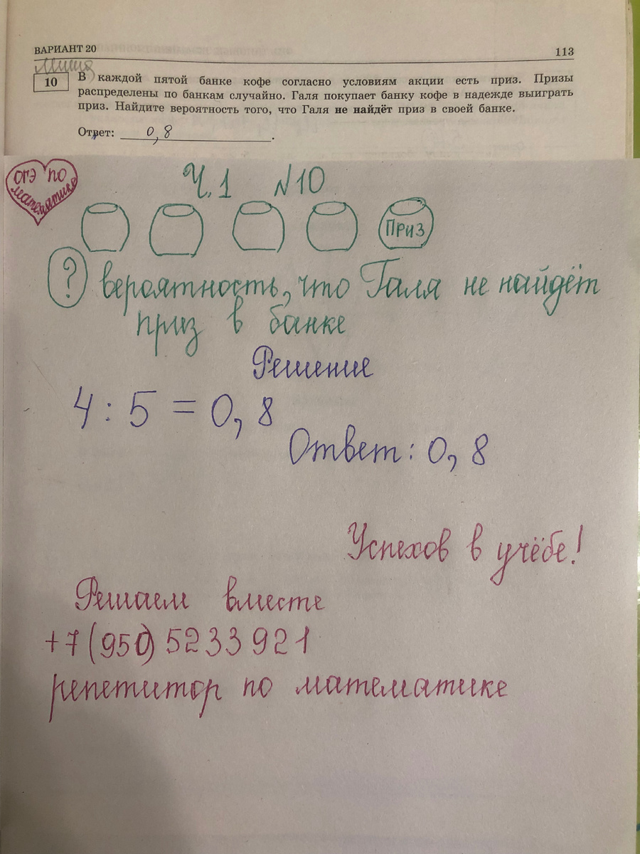 ОГЭ по математике: найти вероятность, что Галя не найдет приз в банке (ч. 1 N 10)
