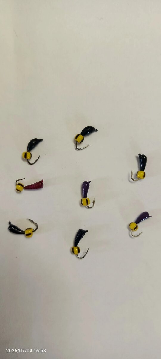 Немного зимнего настроения! Мормышки, сделанные руками мастера Александра Полякова. Методика изготовления: мастер отливает свинцовые заготовки в форме, при этом форма такая, что в заготовке есть пропил под пайку. Затем крючок паяется в заготовку, заготовка обрабатывается, обезжиривается, красится. Мормышка наряжается. И вот у вас отличные безмотылки!