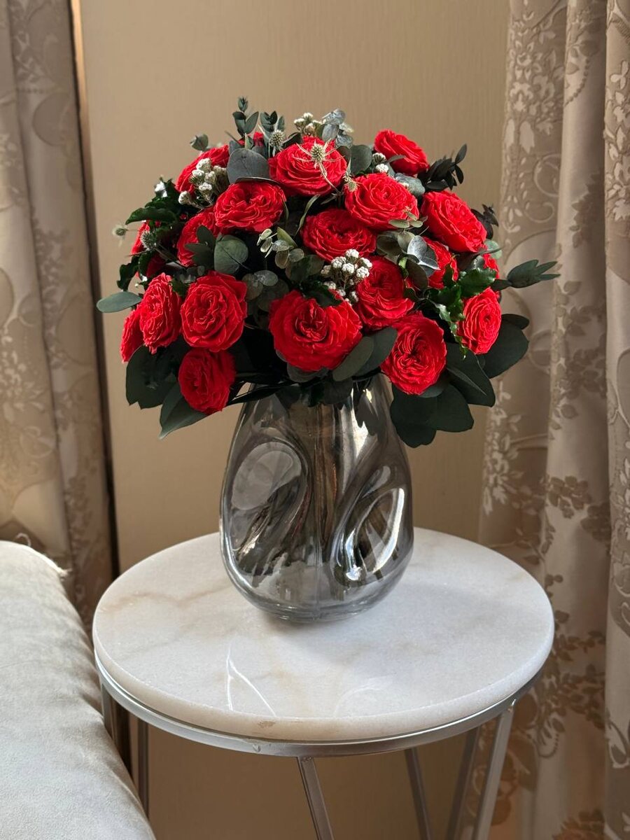 ⚜️Стабилизированные кустовые алые розы «El toro»