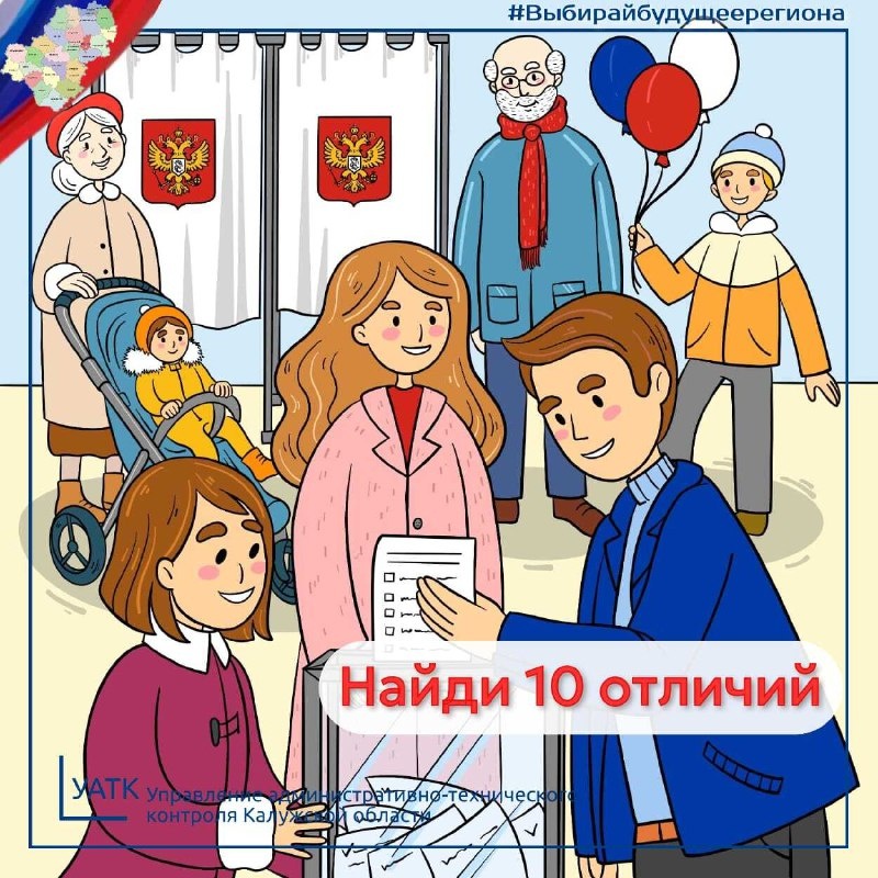 🇷🇺Скоро состоятся важные выборы! Сейчас идет этап выдвижения кандидатов — представление необходимого пакета документов в избирательные комиссии — на выборах всех уровней этот этап завершится 1 августа. ✴️А сегодня мы предлагаем вам проверить свою внимательность! Найдите 10 отличий между двумя картинками. Думаете, это легко? 🔍Делитесь своими находками в комментариях. Готовы? Поехали! #Выбирайбудущеерегиона #Калужскаяобласть #Выборы2025 #УАТК #УАТК40