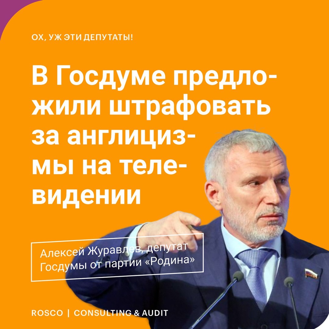💸 В Госдуме предложили штрафовать за англицизмы на телевидении #рубрика_депутаты Алексей Журавлев, депутат Госдумы от партии «Родина», обратился с предложением ввести штрафы за использование в документах и на телевидении заимствованной лексики, которая имеет аналог в русском языке. Политик в разговоре с РИА Новости подчеркнул важность отслеживания чистоты русского языка в официальном использовании как главного инструмента межнационального общения в стране. «В быту, пожалуйста, хоть совсем перейдите на английский, а в общественном поле, будьте добры, переходите на государственный язык», - сказал Журавлев. После распада Советского Союза, по мнению депутата, в России началось засилье англицизмов, которыми стали заменять понятия, уже существующие в русском языке. В качестве примера Журавлев выразил недоумение по поводу того, что в самолетах, даже на внутренних рейсах, объявления делают на английском языке, а использования заимствованных терминов в обозначении профессий «долгое время с