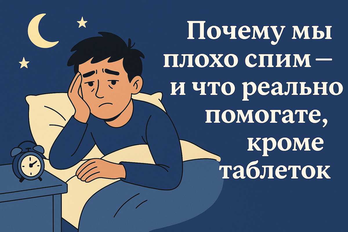 «Вроде устал, а сна нет» «Лежу и думаю тысячу мыслей» «Просыпаюсь разбитым, даже если спал 8 часов» Знакомо? Современный человек всё чаще жалуется на проблемы со сном. Но снотворные — не всегда выход. Разберём, что на самом деле влияет на сон — и что можно изменить без таблеток. Почему нарушается сон? 1. Перегрузка нервной системы Днём ты держишься, а вечером накрывает — стресс выходит наружу. Мозг продолжает «жевать» все события, не умея выключаться. 2. Синий свет Гаджеты, особенно перед сном, обманывают мозг: он думает, что ещё день. А значит — меньше мелатонина, больше бодрствования. 3. Нерегулярный режим Сегодня лёг в 23:00, завтра в 2:00 — тело сбивается с ритма и не понимает, когда пора спать. 4. Перегрев или холод Температура в комнате имеет значение: оптимально 18–20 градусов. Слишком жарко или слишком холодно — мозг не может расслабиться. История из практики Никита, 31 год, IT-специалист. Жаловался, что не может уснуть до 3 ночи. А утром — «как зомби». Оказало