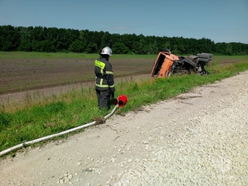 В Залегощенском районе перевернулся бензовоз. Как сообщили в пресс-службе регионального МЧС, по состоянию на 14:00 последствия ликвидированы: топливо залили пеной, машину эвакуировали в Зелегощь. Пострадавших нет. Все случилось сегодня недалеко от деревни Кочетовка. Причина ДТП — техническая неисправность бензовоза. Водитель вез дизель для заправки сельхозтехники. При осмотре сотрудники МЧС обнаружили, что цистерна подтекала. В операции участвовали 24 человека и 14 единиц спецтехники, включая 3 человек и 2 машины — МЧС. (Фото: ГУ МЧС России по Орловский области) @1oblastnoi