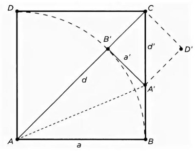 Используя бесконечную структуру повторных откладываний, все-таки доказали несоизмеримость стороны и диагонали несуществующего квадрата.