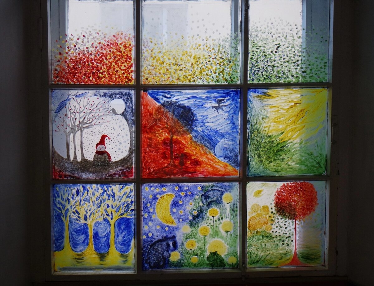 Благодаря комментарию блогера @Yana Zaria вспомнила, что давно не писала о хобби:). Эта статья была написана на заре ведения канала, поэтому я сейчас просто её скопирую (прошу прощения у тех, кто уже читали!). Статья называлась: - всегда затрудняюсь с ответом. Помню, что рисовать на стёклах и окнах начала с лёгкой подачи коллеги, которая всегда меня подбадривала: - А вход на ярмарку оформим так: - Анна Андреевна разрисует дверь зубной пастой, у неё прекрасно получится. Начала с зубной пасты, а потом перешла на гуашь. Многие спрашивают, где купить специальные краски, не верят, что гуашь фирмы "Луч" из фикс прайса выглядит не хуже, чем витражные краски... весной я окна мою и... рисую снова: Ученики радуются, гадают, что на этот раз? - стоят рядом, смотрят: рисунок я иногда делаю за пару-тройку часов, иногда приходится растягивать процесс на пару-тройку дней (в зависимости от основной занятости): Взрослые иногда недоумевают - зачем эта возня, но началка убеждает их: - Это и для вас, и д