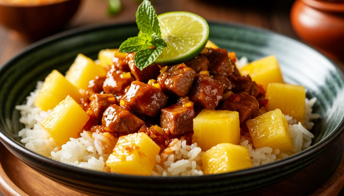 #ЧШБ: Кисло-сладкая свинина с ананасами и рисом с кунжутом