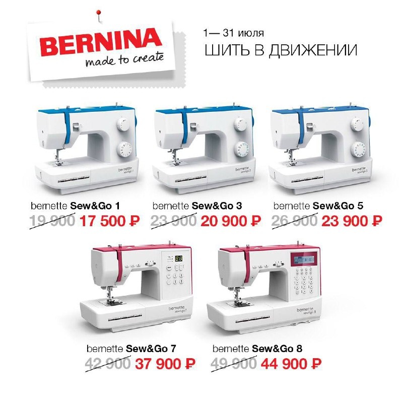 ШИТЬ В ДВИЖЕНИИ 🚗 Компактные, простые и надежные швейные машины, которые можно взять с собой и сэкономить: 🍅Sew&Go1 — 17 500₽ вместо 19 900₽ 🥒Sew&Go 3 — 20 900₽ вместо 23 900₽ 🌽Sew&Go5 — 23 900₽ вместо 26 900₽ 🍓Sew&Go7 — 37 900₽ вместо 42 900₽ 🥕Sew&Go8 — 44 900₽ вместо 49 900₽ Скидка действительна до 31.07.2025 ⚡️ Приходите за консультацией и на тест-драйв к нам в магазин. Или заказывайте технику на сайте BARRA.PRO, по телефону или просто напишите нам в вотсап, телеграм 8 (920) 413-25-83 📲 К дверям вашего дома оборудование приедет бесплатно 🎁