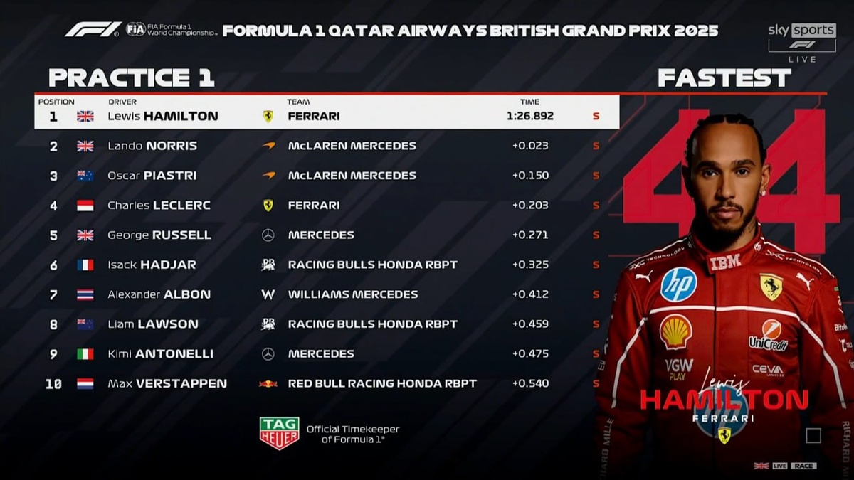 Результаты первой сессии свободных заездов Ф1