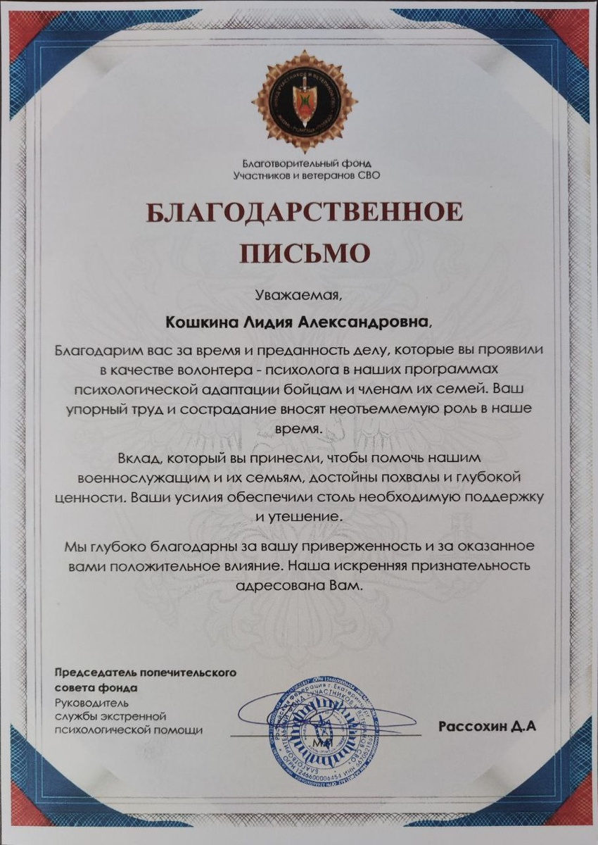 Спасибо Фонду за высокую оценку и признание моей деятельности