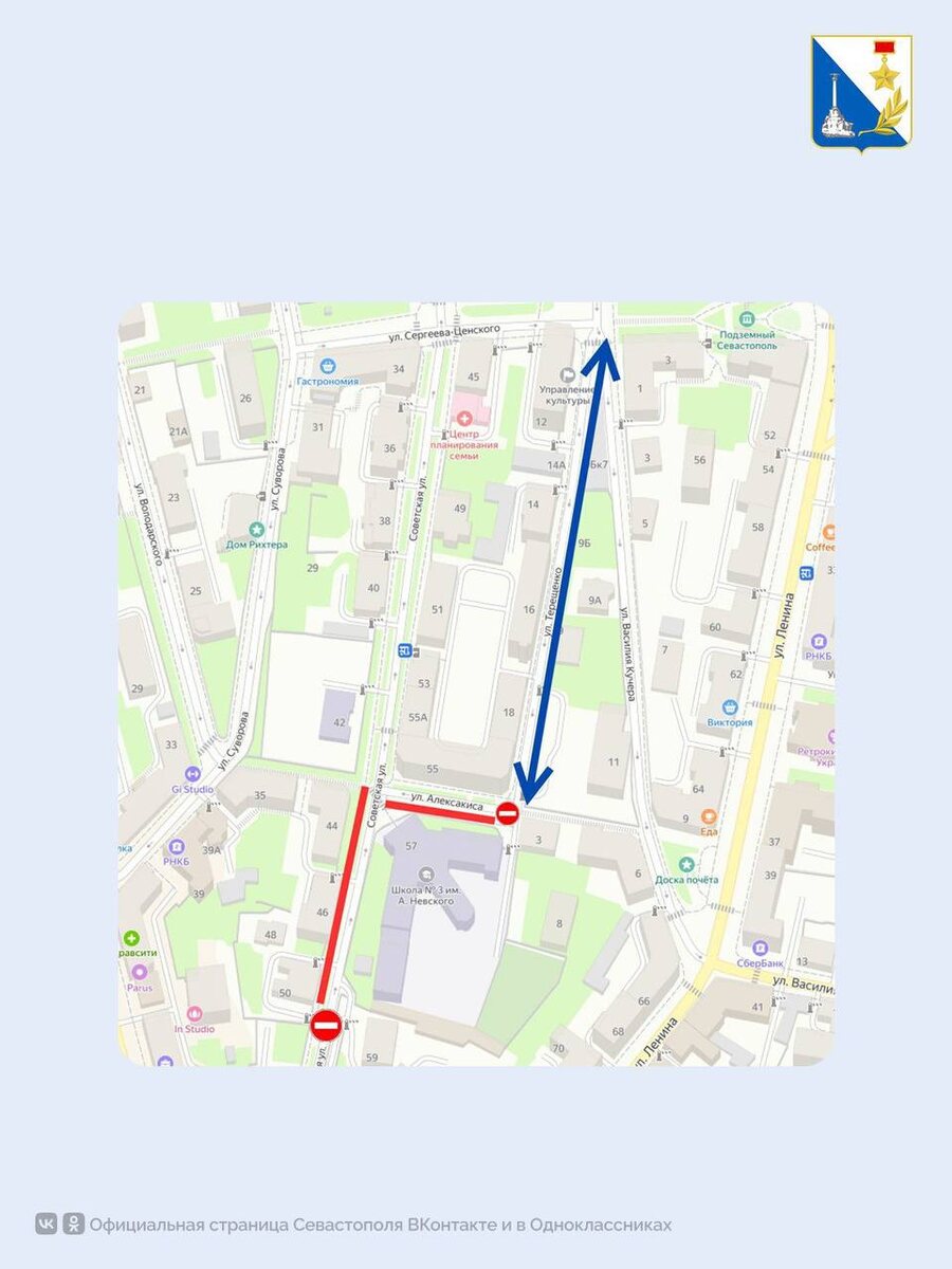 На следующей неделе на центральном холме Севастополя ограничат движение транспорта 9 и 10 июля подпорные стены у школы №3 будут готовить к ремонту. Из-за этого изменится схема движения: — 9 и 10 июля с 8:00 до 18:00 улицу Алексакиса полностью закроют для транспорта — 9 июля с 9:00 до 14:00 улицу Советская частично перекроют между домами №50-55 На улице Терещенко временно организуют двустороннее движение, а на въезде с площади Ушакова будет висеть знак «Тупик», сообщили в Правительстве Севастополя. 📺СТВ 24 | Подписаться