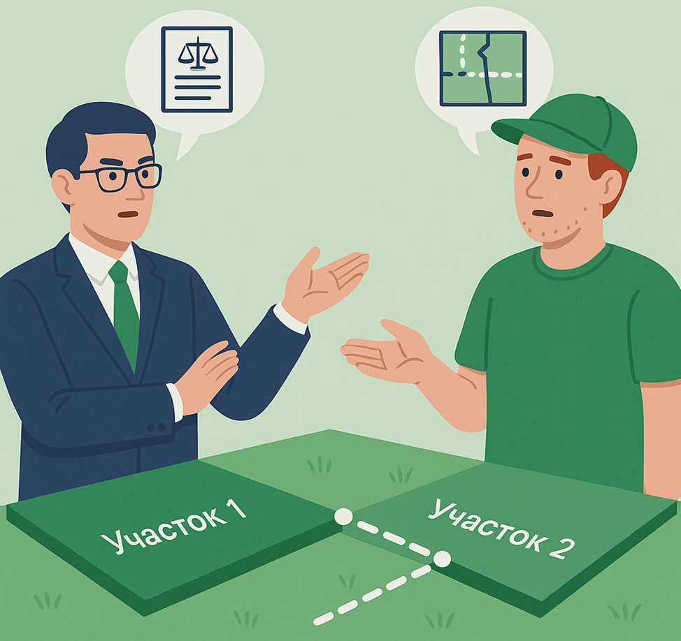 Казалось бы — участок есть, документы на руках, забор стоит уже лет 10. А потом вдруг — приходит сосед и заявляет, что вы захватили его землю. Или ещё хуже — Росреестр на публичной кадастровой карте показывает, что ваш земельный участок находится ровно на границе двух участков. А часть земли вообще… ничья. Что делать? Разбираем на примере из практики. Иван унаследовал участок в СНТ от бабушки. Земля в собственности, кадастровый номер есть, границы поставлены ещё в 2012 году. Всё было спокойно — пока сосед не решил поставить новый забор. Вызвали кадастрового инженера, и тот «вдруг» обнаружил: участок Ивана на 1,8 метра залезает на землю соседа. Более того, по данным ЕГРН, границы пересекаются. Ошибки в межевании - не редкость, особенно если границы определяли давно, «на глаз», да ещё и без согласования с соседями. Причины могут быть разные: Запросите: Нужен профессионал, который проверит: Иногда всё решается просто: обсудили с соседями, подписали согласие на уточнение границ, и внесли